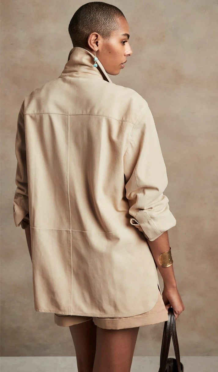 - beige leather shirt