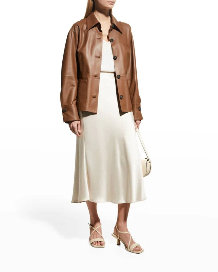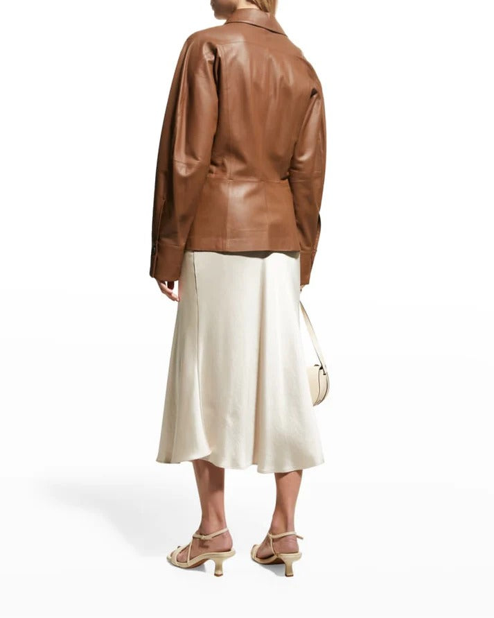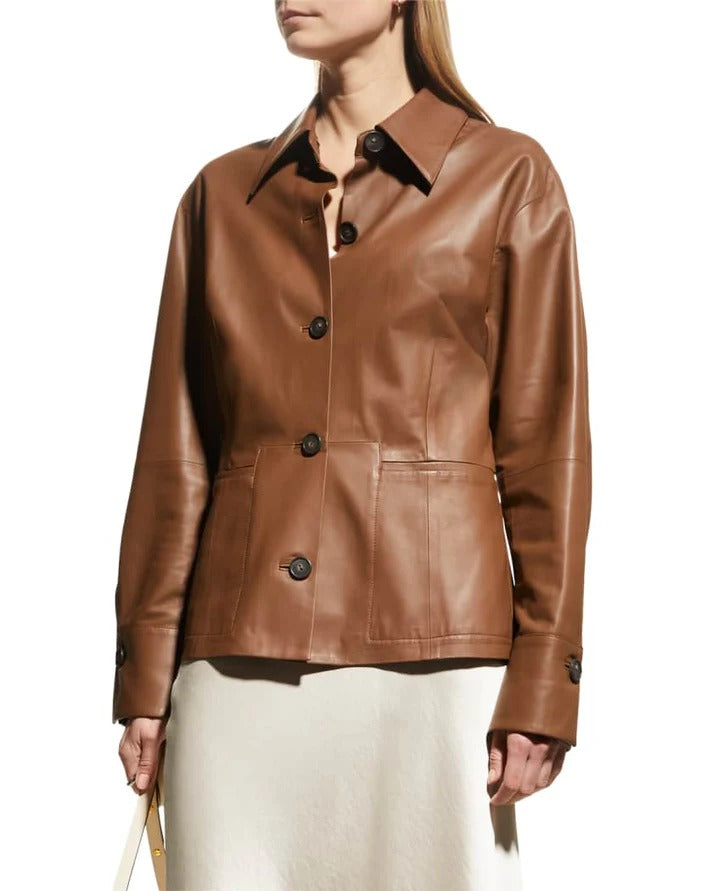 Women's Dark Brown Full Sleeve Leather Shirt with Tailored Fit
