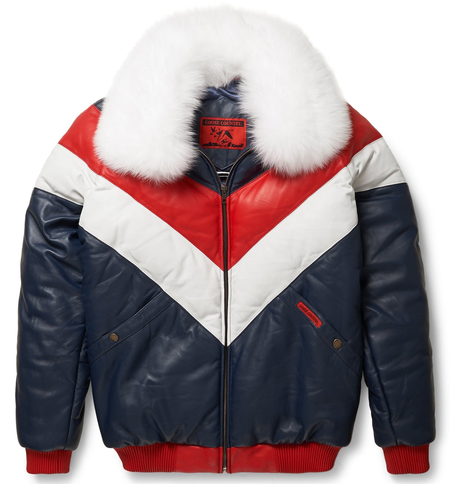 Iconic Vintage Men's V-Bomber with chevron bubble. Made of premium lamb skin leather with a detachable full-skin fox collar. The modern version of the classic v-bomber. Tested and perfected fit.