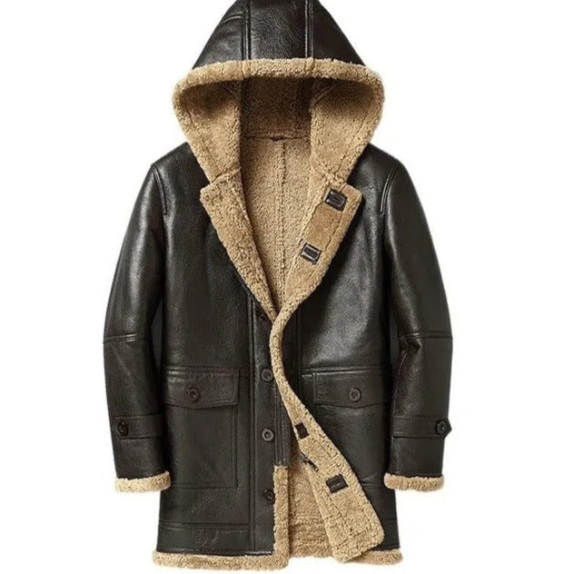 Men's Raf B3 Brown Bomber Genuine Leather Jacket And Winter Sheepskin Coat