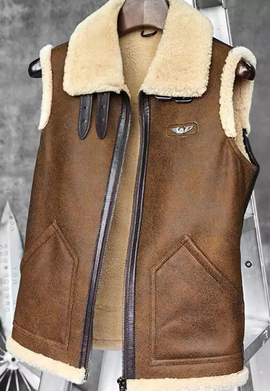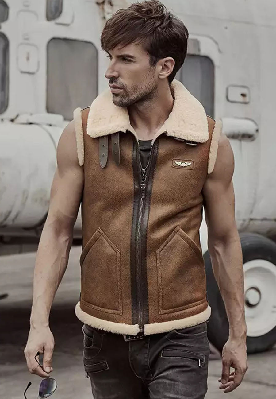 Men’s Camel Brown Leather Shearling Vest