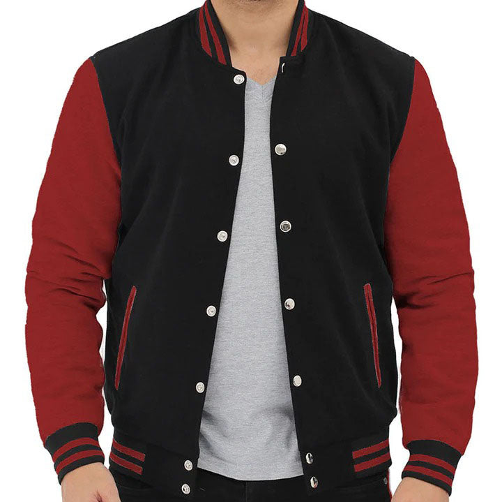 Stay fashionable in the cold with this stylish men's maroon and black baseball varsity jacket. Its comfortable fit and breathable material will keep you feeling warm and looking good. Practical and chic, this jacket is a must-have for any wardrobe.
