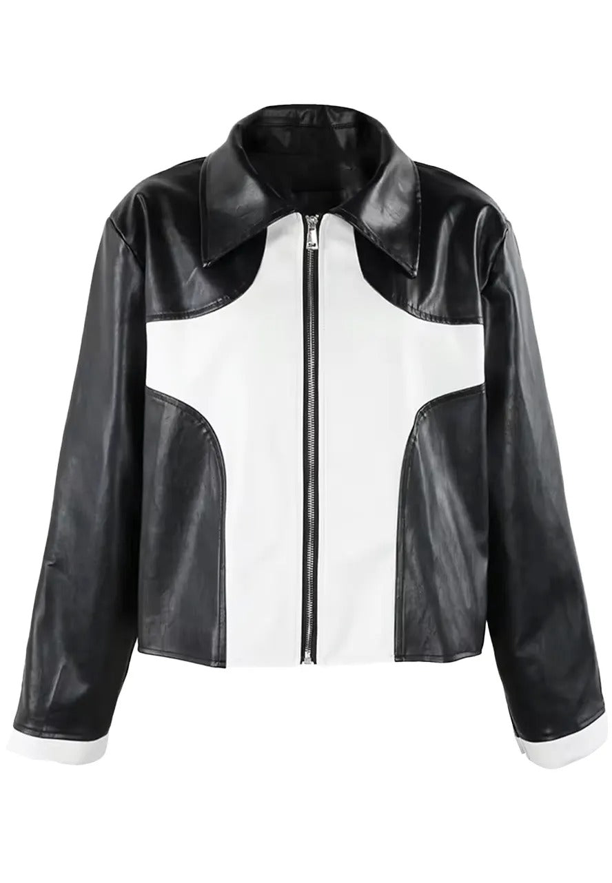 Men’s Contrast Black Leather Racer Jacket – Bold & Stylish