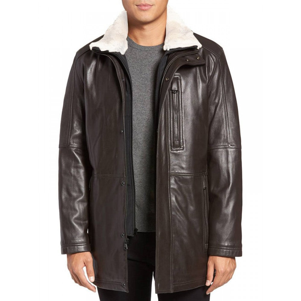 Men's Dark Brown Stylish Real Sheepskin Leather Fur Coat