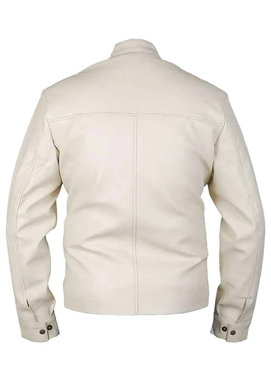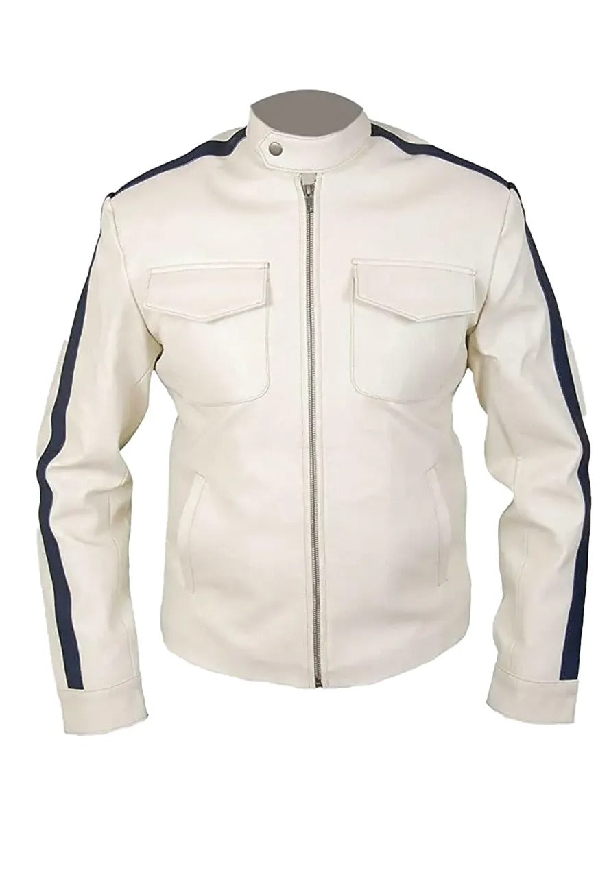 Men’s Off-White Leather Motorcycle Jacket with Black Stripe