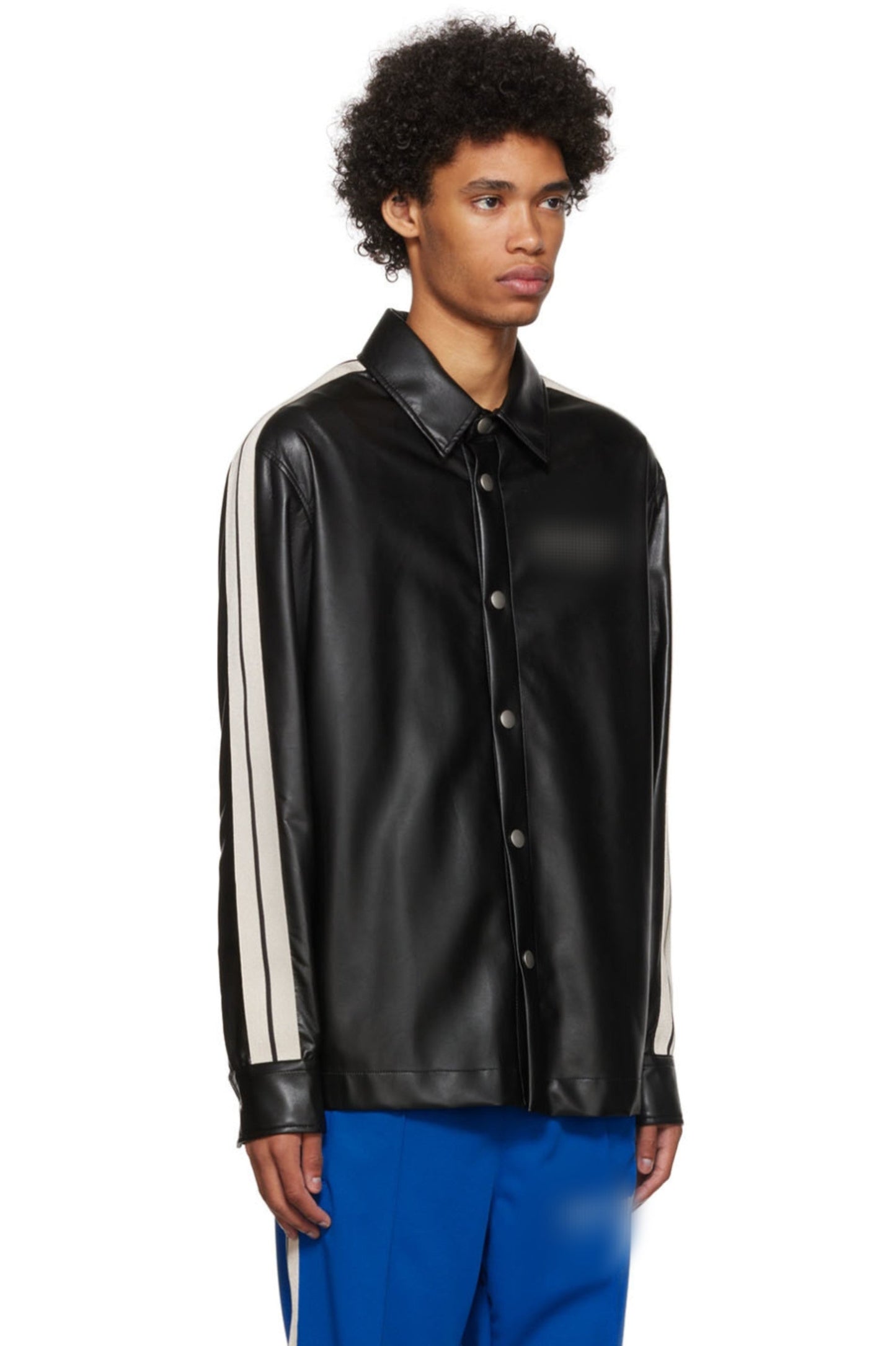 Men’s Stylish Black Genuine Leather Shirt With White Stripes