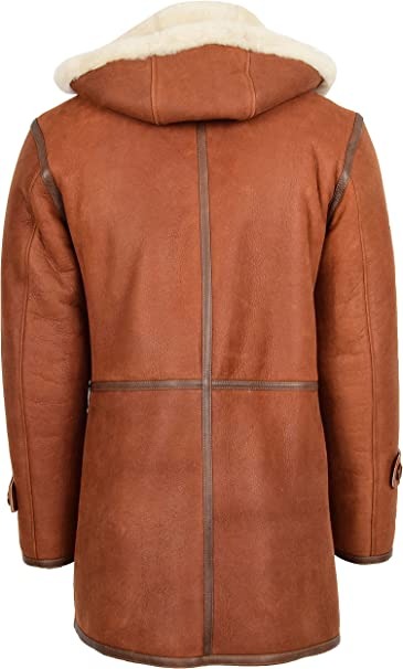 Men's Whiskey Sheepskin Duffle Coat with Hood
