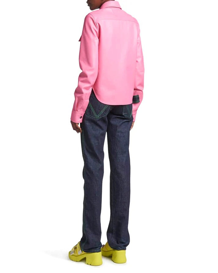 - pink leather shirt