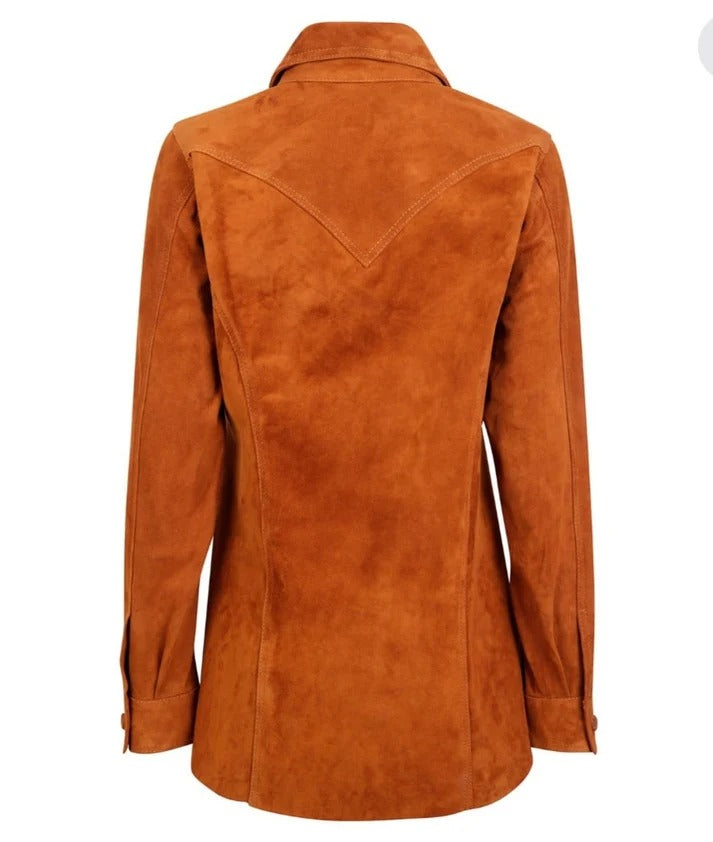 Women’s Dark Brown Suede Leather Shirt – Trucker Style Classic Fit