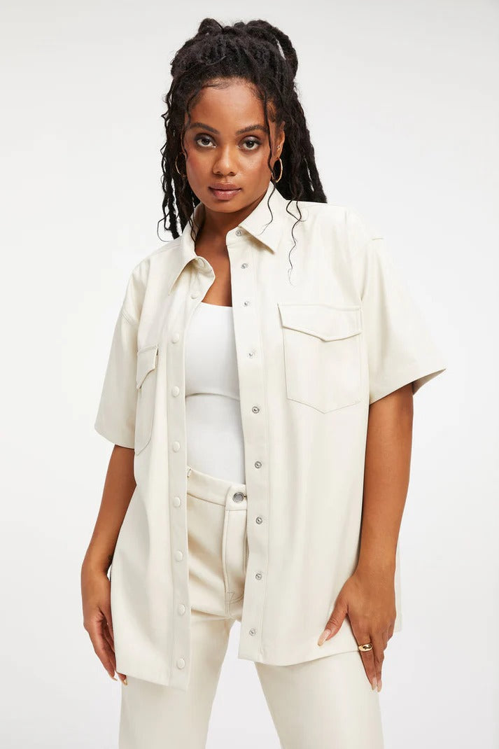 Women’s White Trucker Leather Shirt – Half Sleeves with Modern Fit