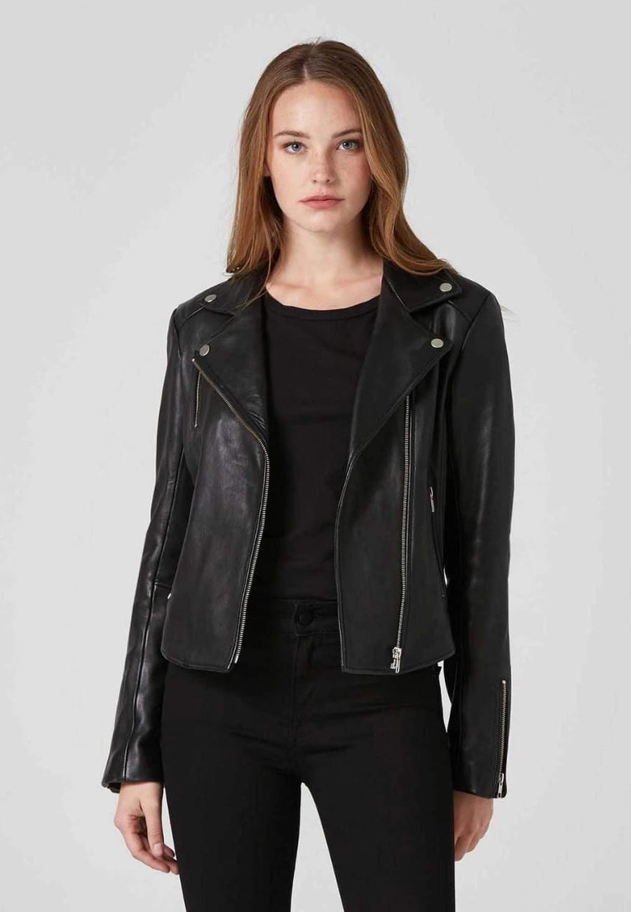 Women’s Black Leather Biker Jacket