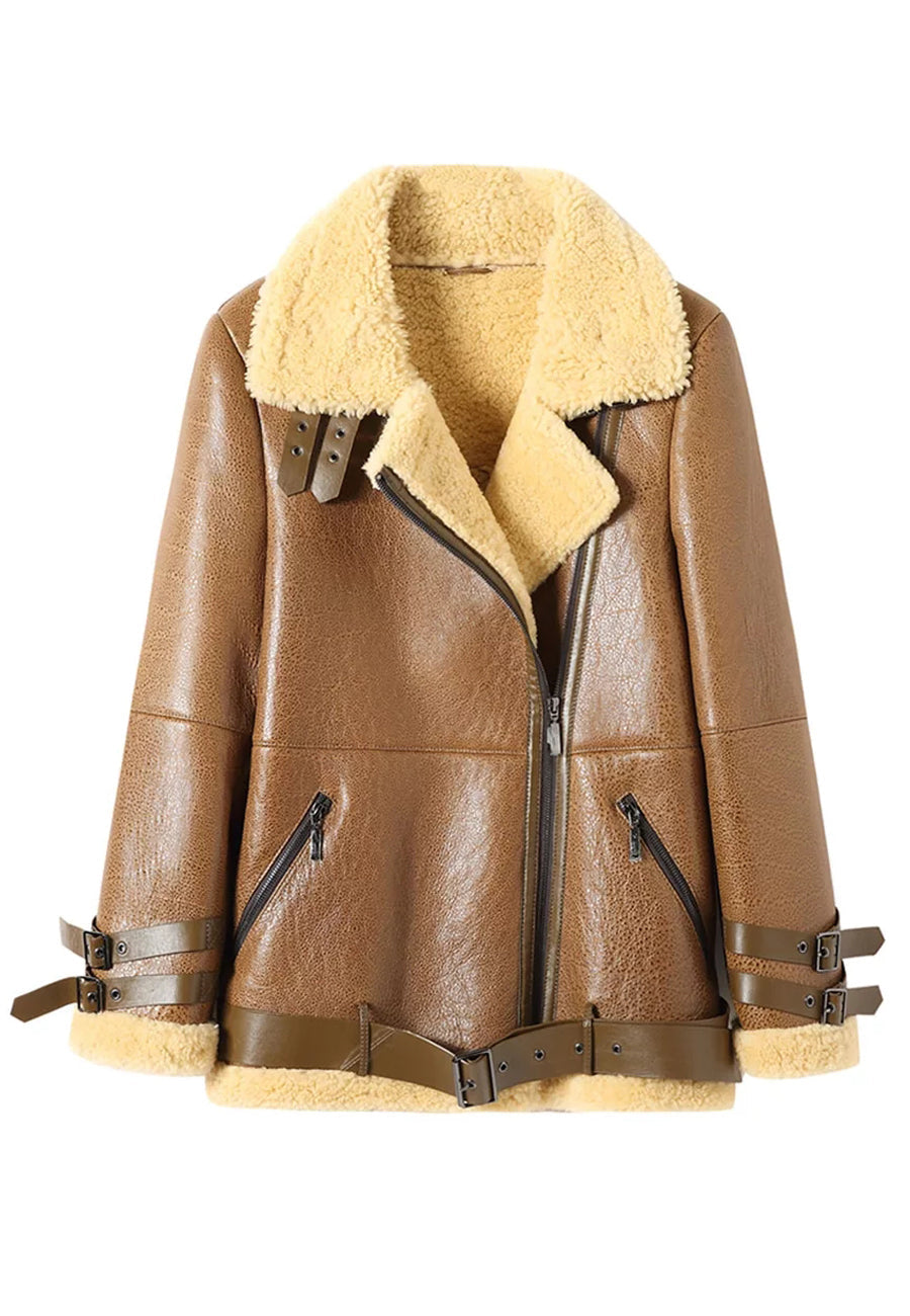 Stay warm and stylish with this Brown Leather Shearling Long Coat. Expertly crafted from sheepskin leather and faux fur, it is designed with a stylish collar, zip closure, two outer pockets, and one inner pocket. Enjoy free shipping and a great price.