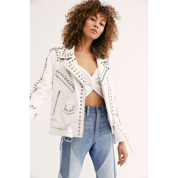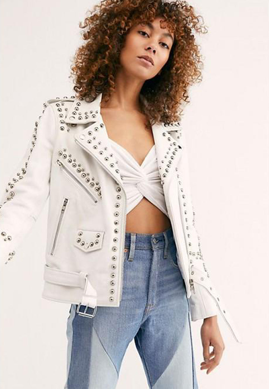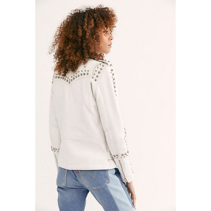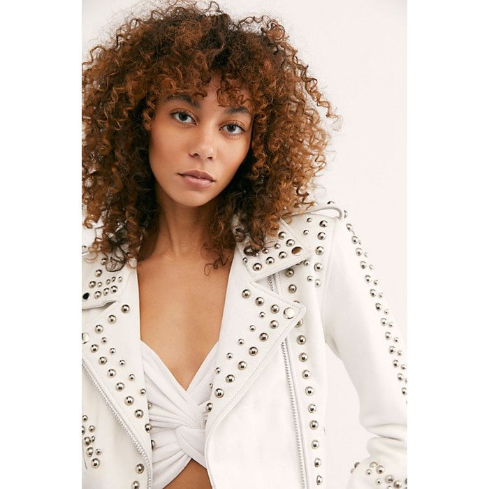 Women’s White Leather Biker Punk Jacket