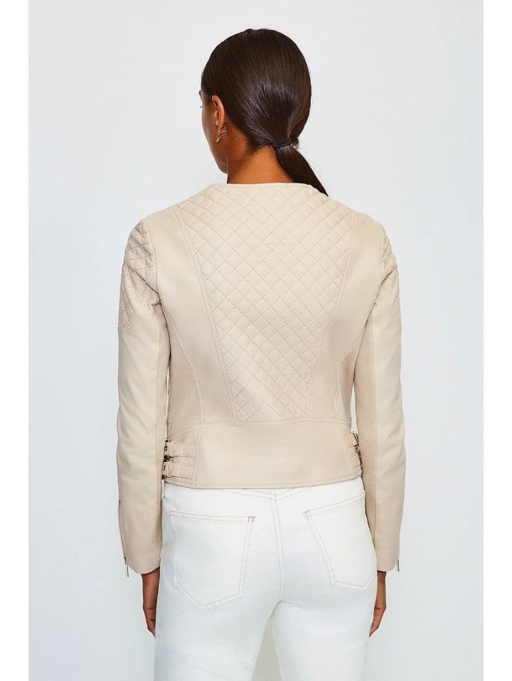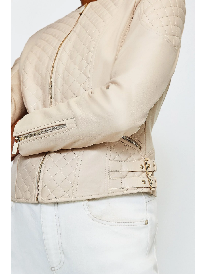 Women's Beige Cream Leather Biker Jacket