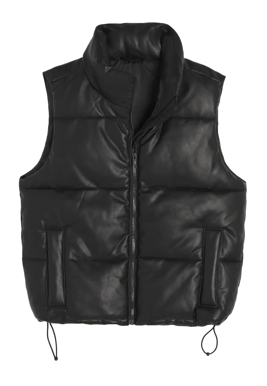 Women's Black Leather Puffer Vest – Ultimate Warm & Stylish Vest