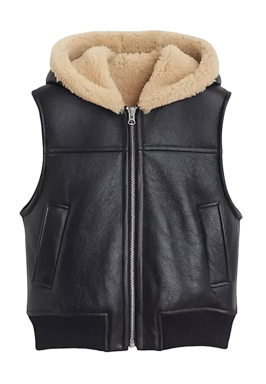 Stay warm in sleek style with the Women's Black Shearling Lined Genuine Leather Vest, crafted from premium leather and soft faux shearling lining. This vest offers cozy comfort without sacrificing sophistication—perfect for chilly days or stylish layering. Ideal for casual wear or dressing up winter outfits.