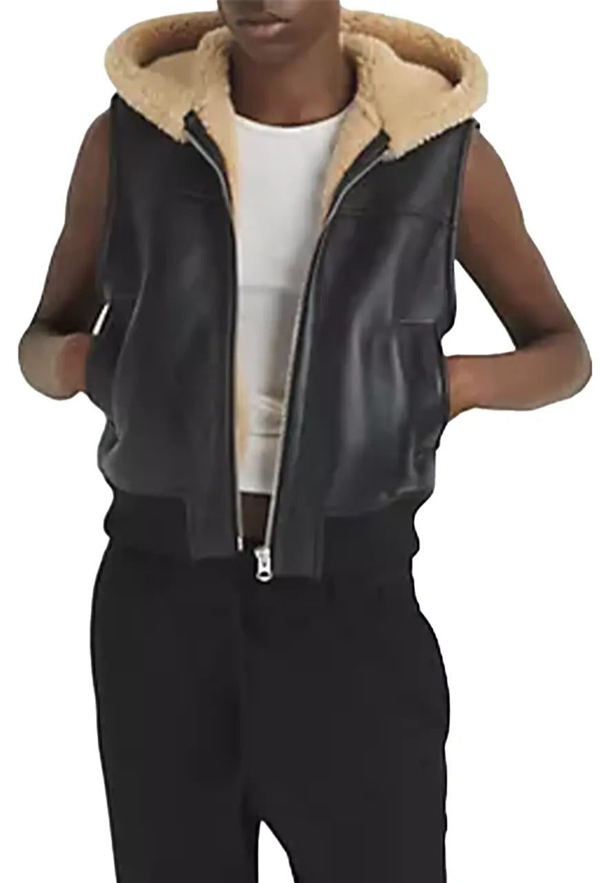 Women's Black Shearling Lined Genuine Leather Vest