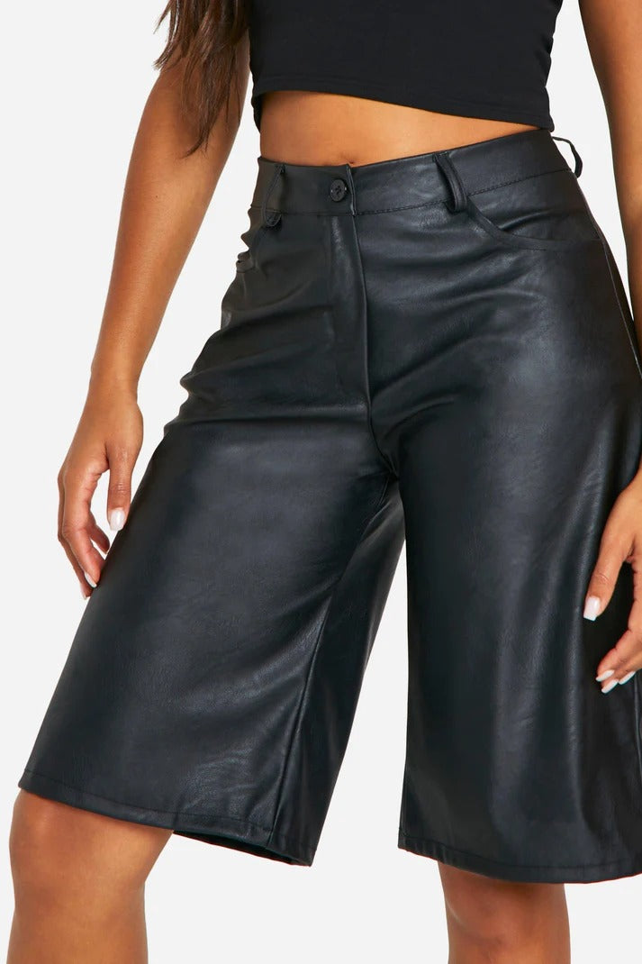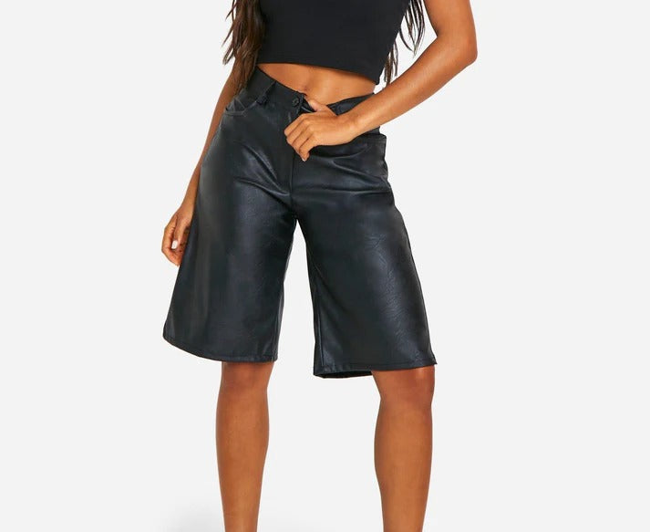 Women's Black Long Leather Shorts – Chic, Edgy & Elegant Streetwear