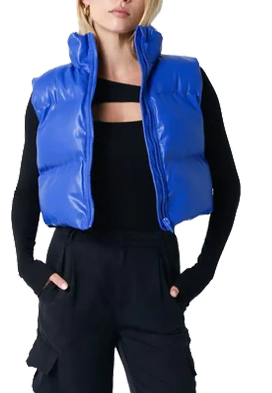 Buy the best Women's Blue Leather Puffer Vest at Glory Store AU with discounted price with free shipping.
