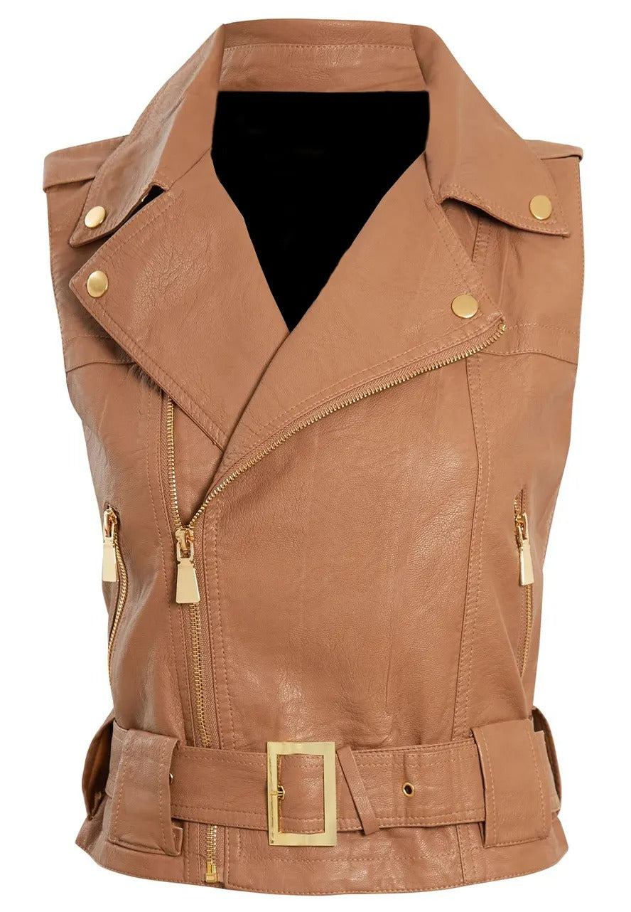 Women's Brown Leather Gilet Biker Vest – Stylish Moto Vest