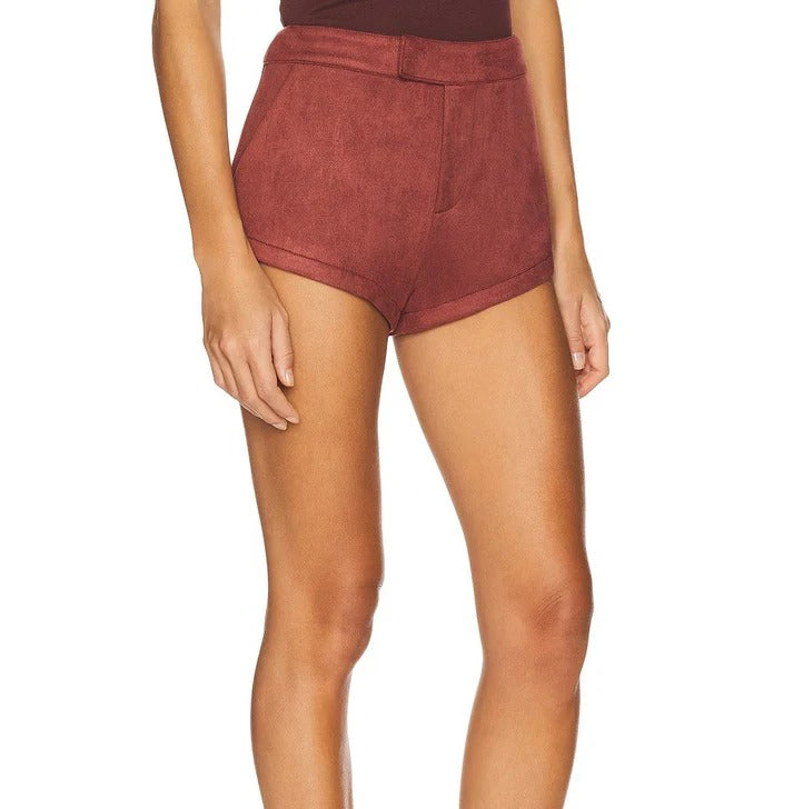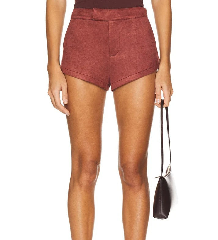 Women's Burgundy Suede Leather Shorts – Soft, Stylish & Statement-Making