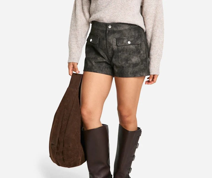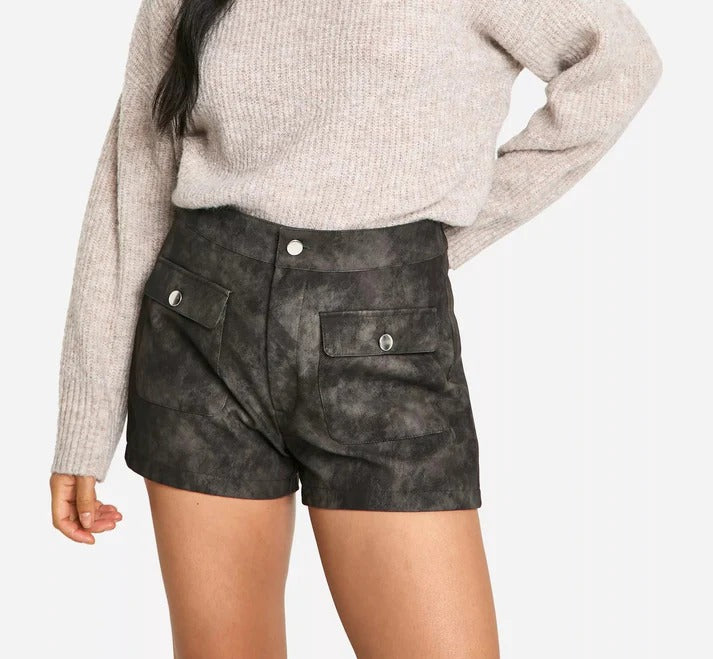 Women's Charcoal Grey Leather Shorts – Sleek, Trendy & Versatile Fit