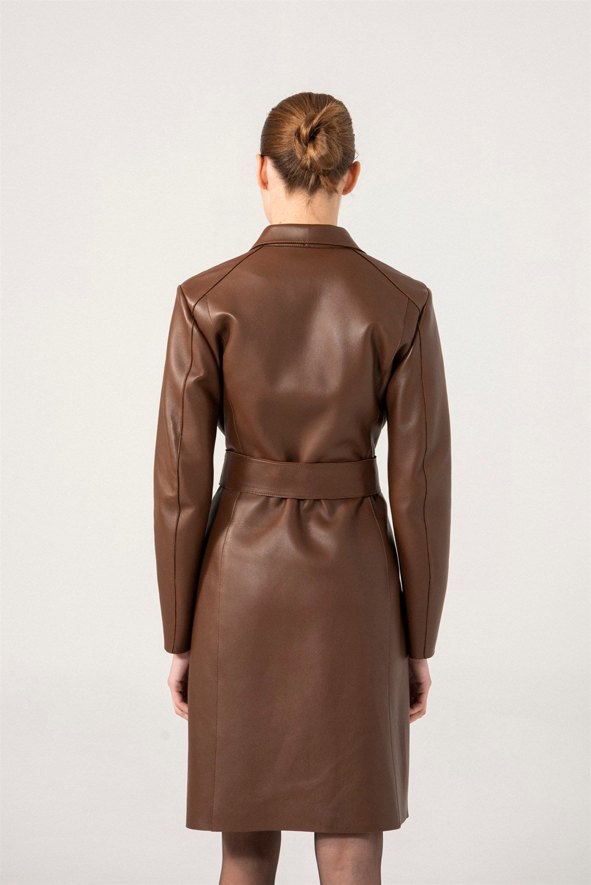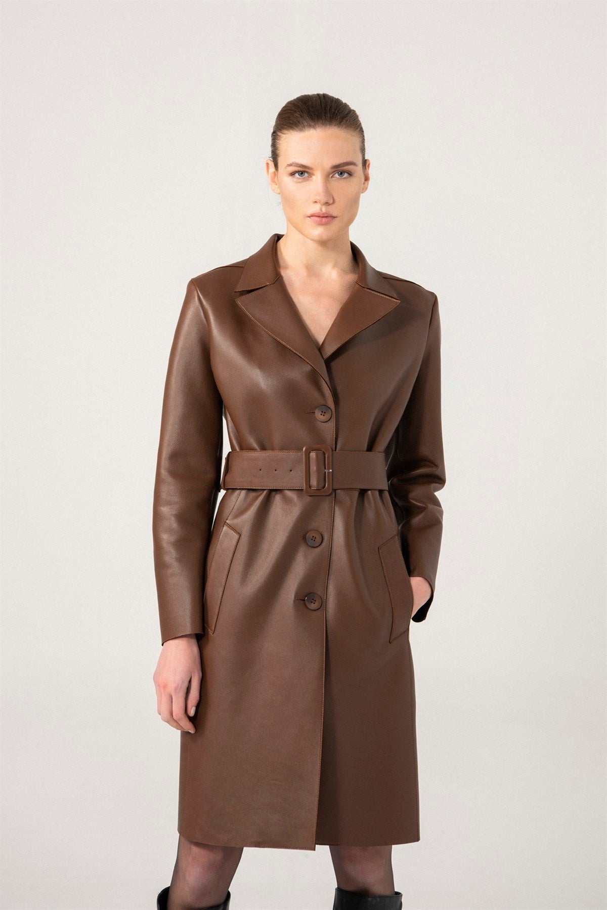 Women’s Chocolate Brown Sheepskin Leather Trench Coat