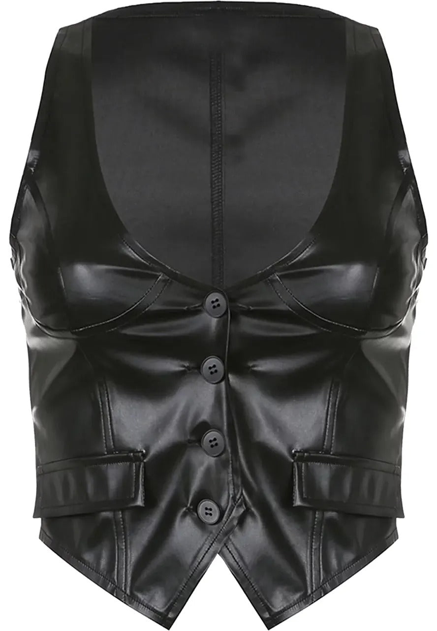 Buy the best Women's Cropped Black Leather Vest at Glory Store AU with discounted price with free shipping.