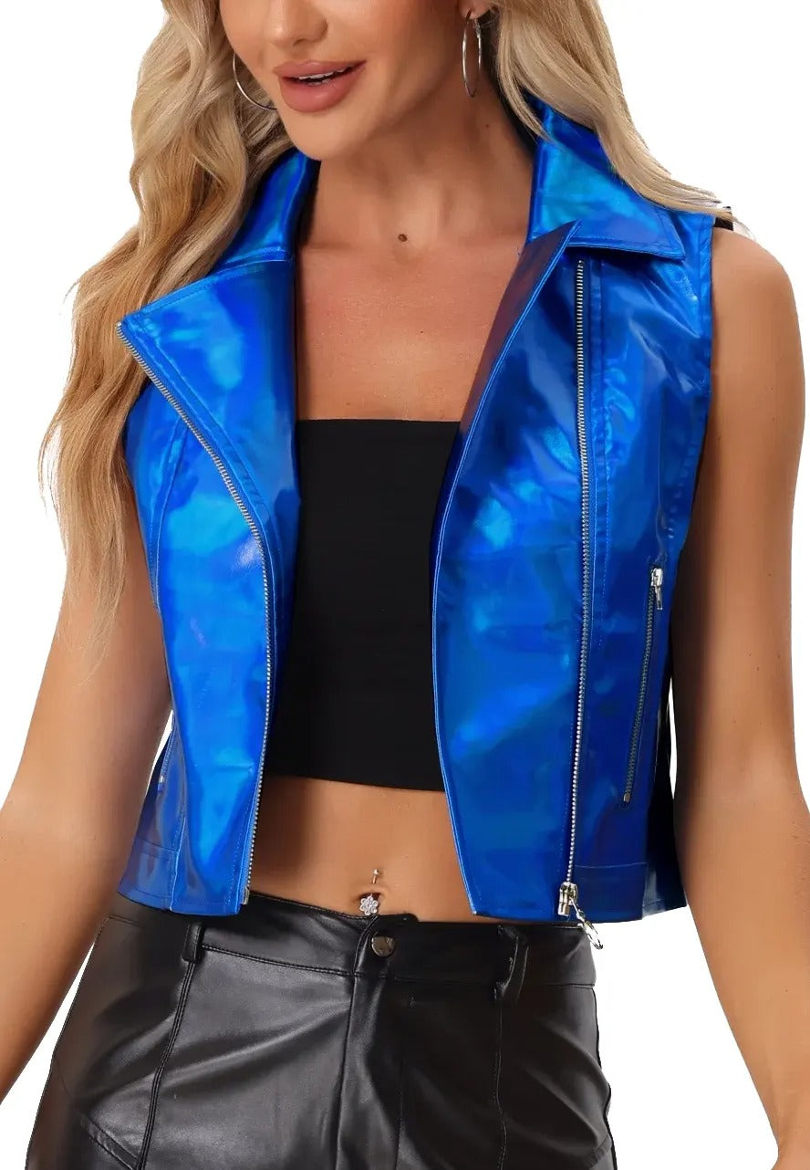 Buy the best Women's Cropped Blue Leather Vest at Glory Store AU with discounted price with free shipping.
