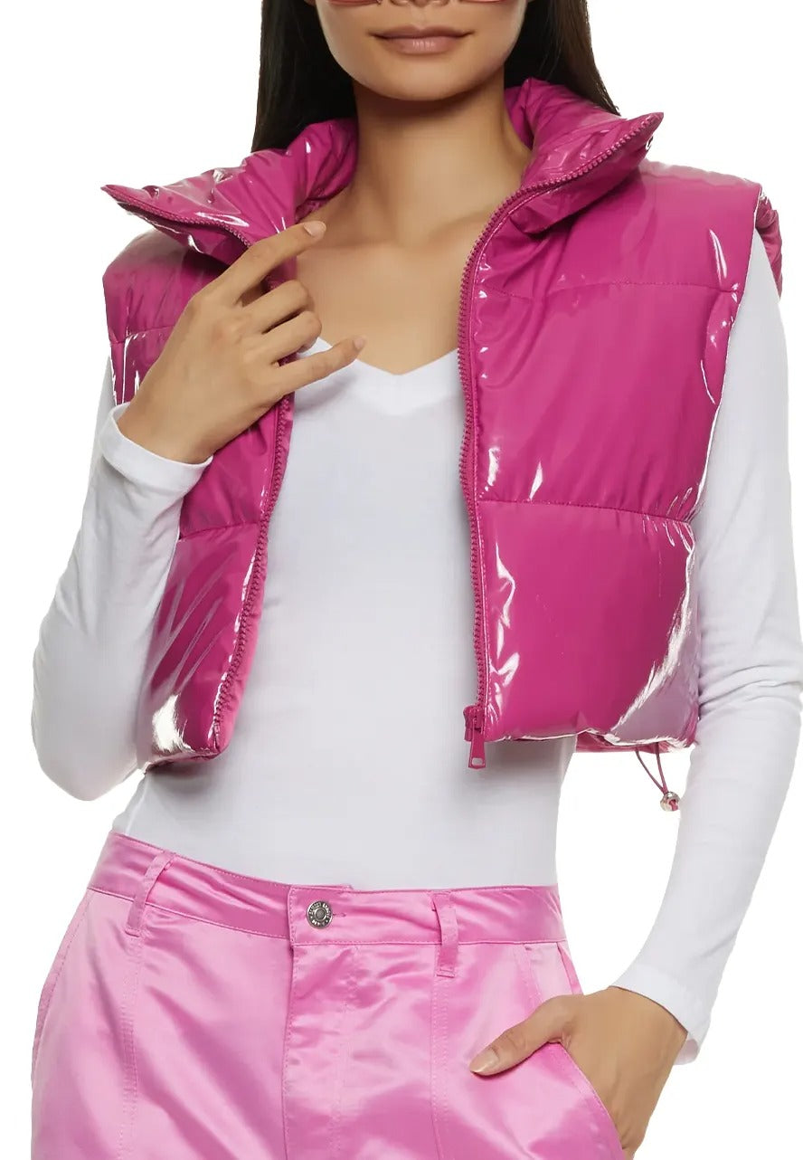Buy the best Women's Cropped Magenta Leather Puffer Vest at Glory Store AU with discounted price with free shipping.