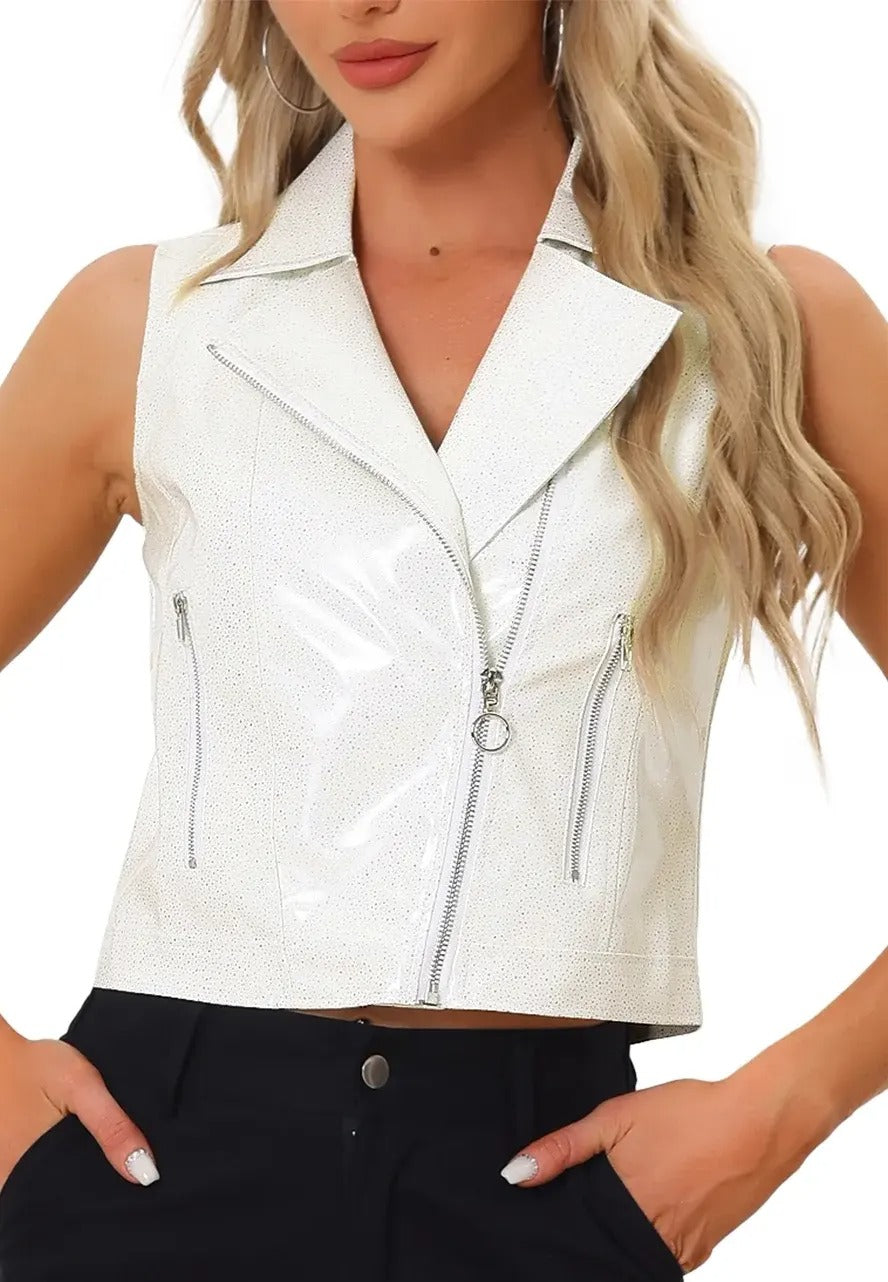 Buy the best Women's Cropped White Leather Vest at Glory Store AU with discounted price with free shipping.