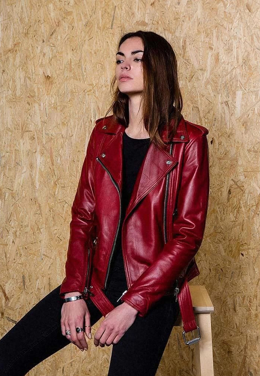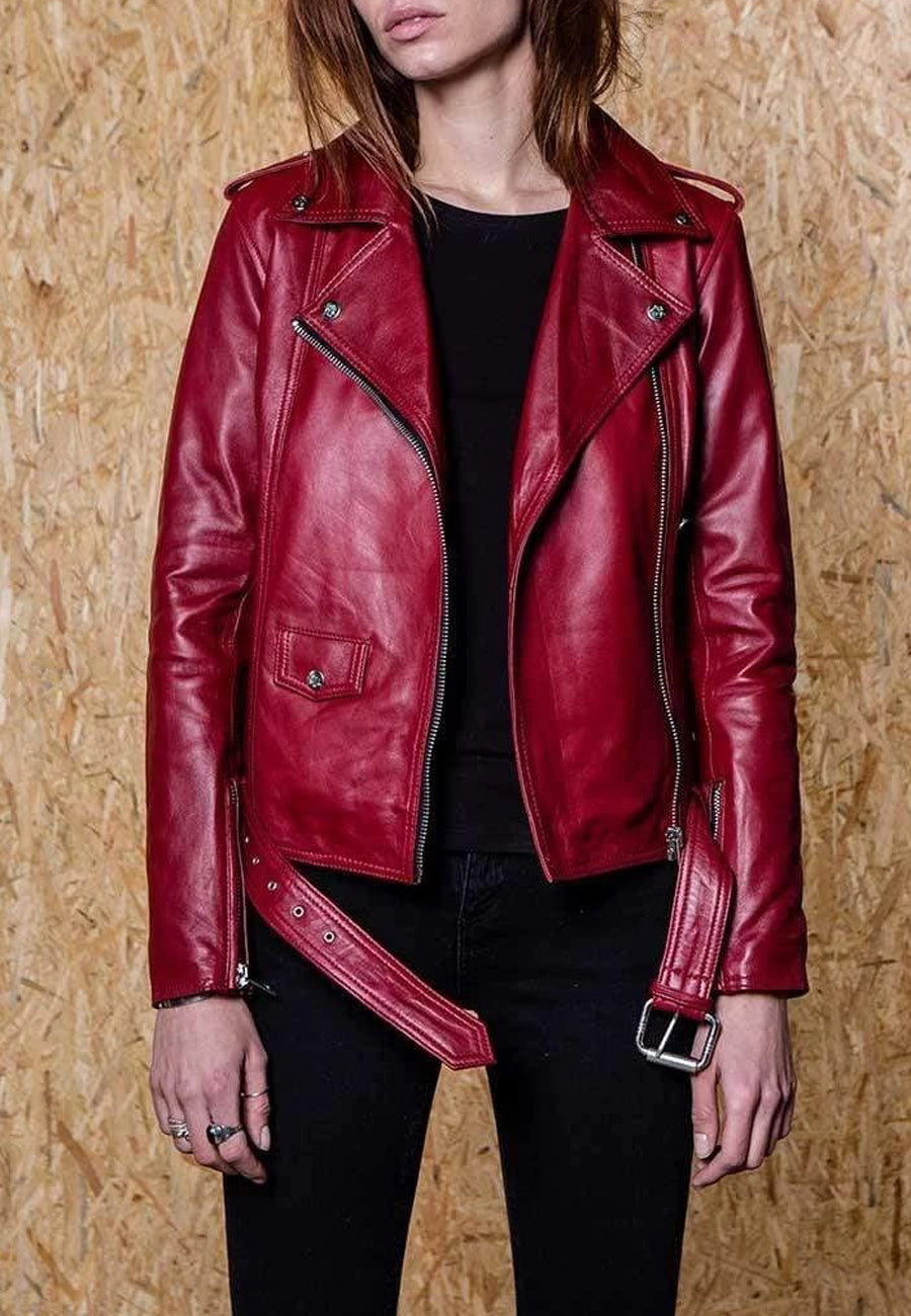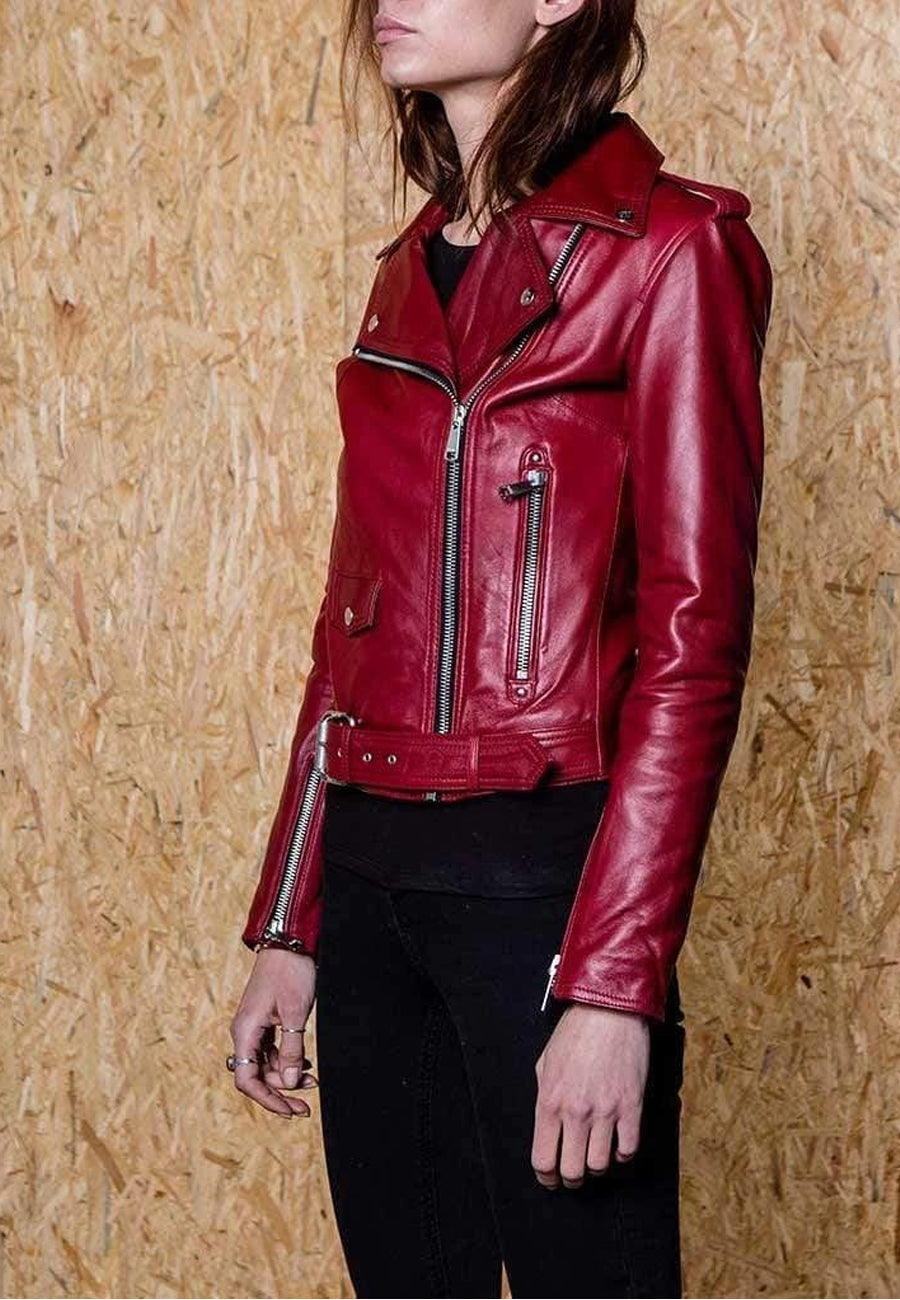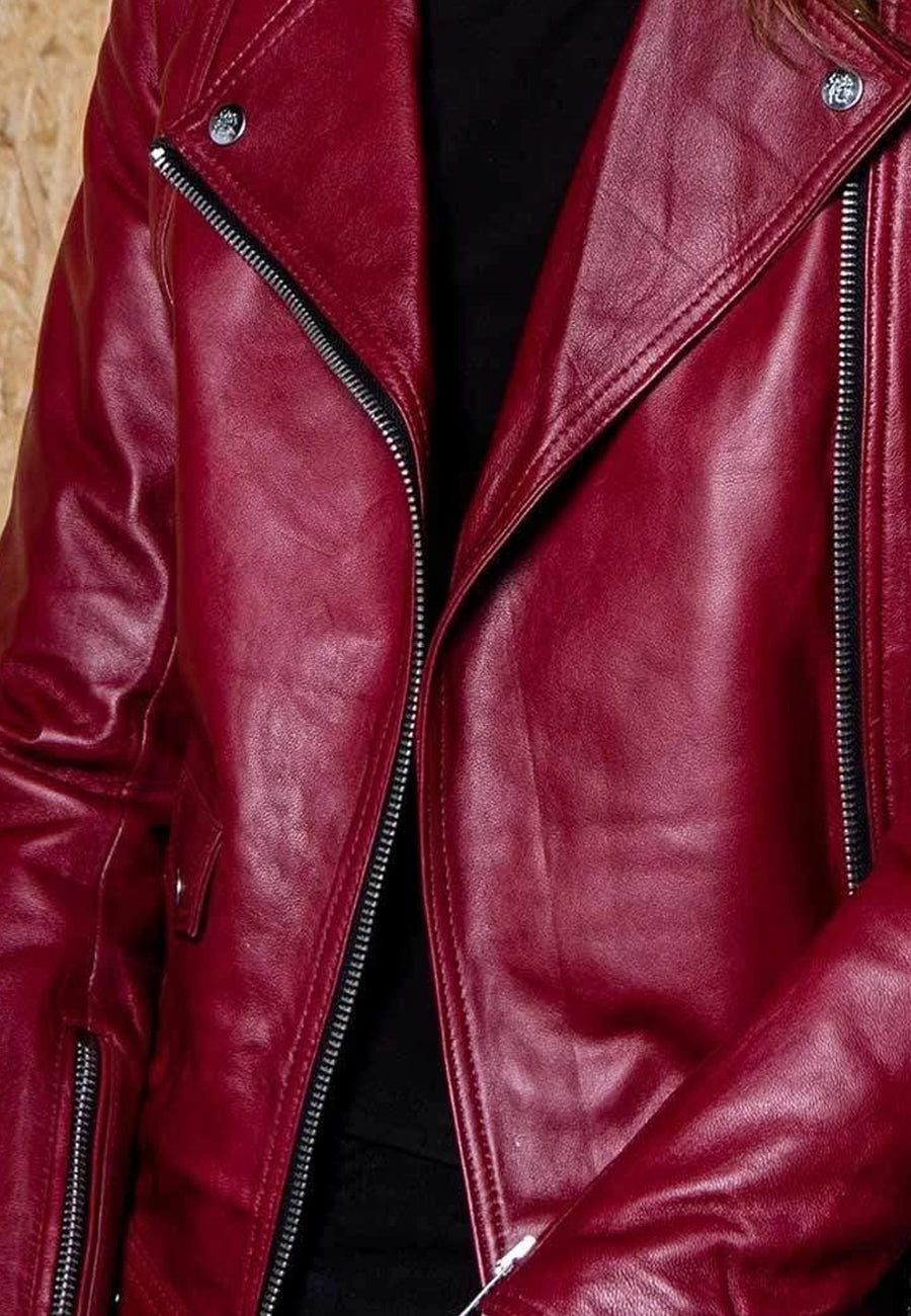 Women's Dark Red Leather Biker Jacket