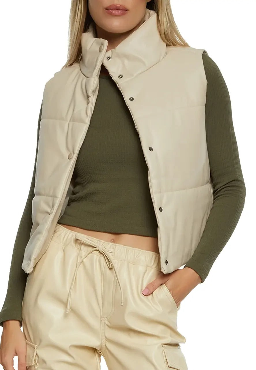 - beige leather puffer vest