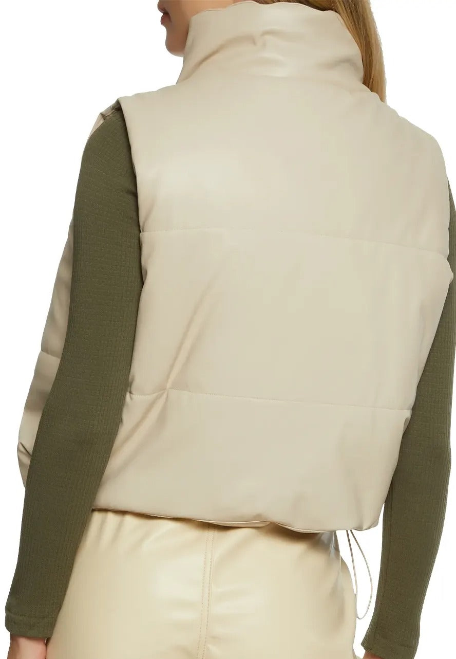 Buy the best Women's Drawstring Hem Beige Leather Puffer Vest at Glory Store AU with discounted price with free shipping.