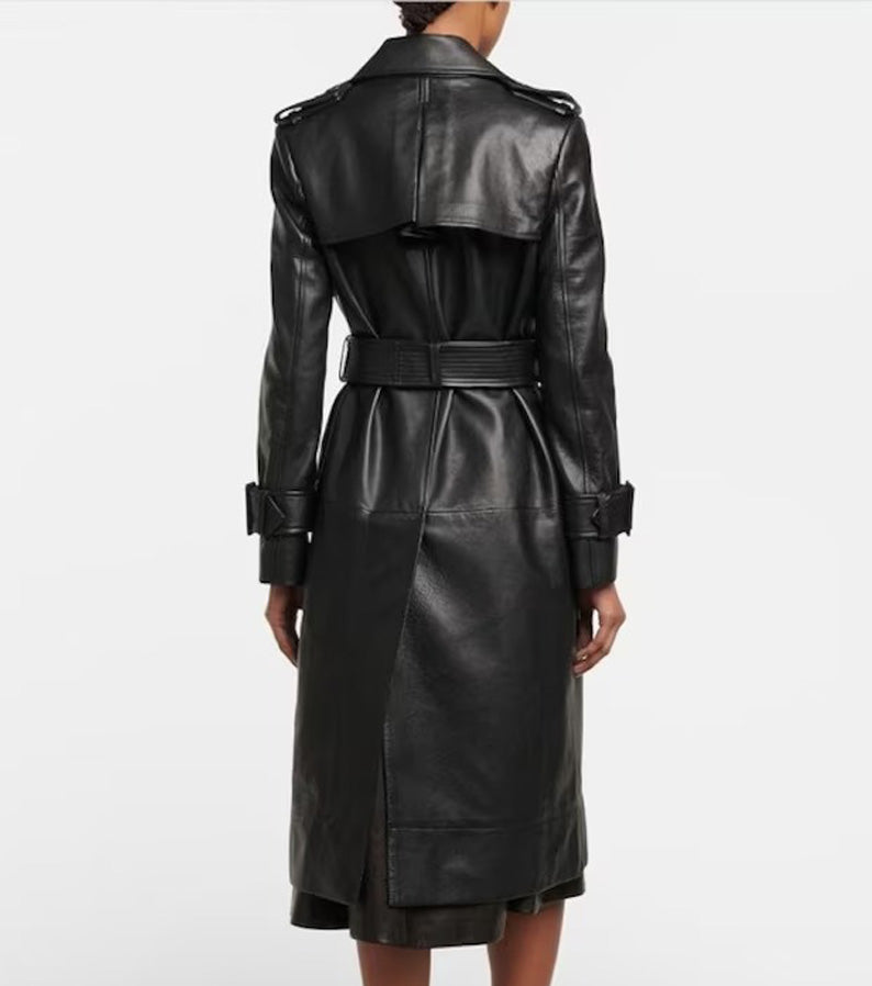 This women's trench coat is crafted from premium sheepskin leather for a luxurious feel and timeless look. Extra-long cut with waist belt for a tailored fit, the coat is lined with moisture-wicking and breathable fabric to keep you dry and comfortable. A stylish and practical choice for any occasion.