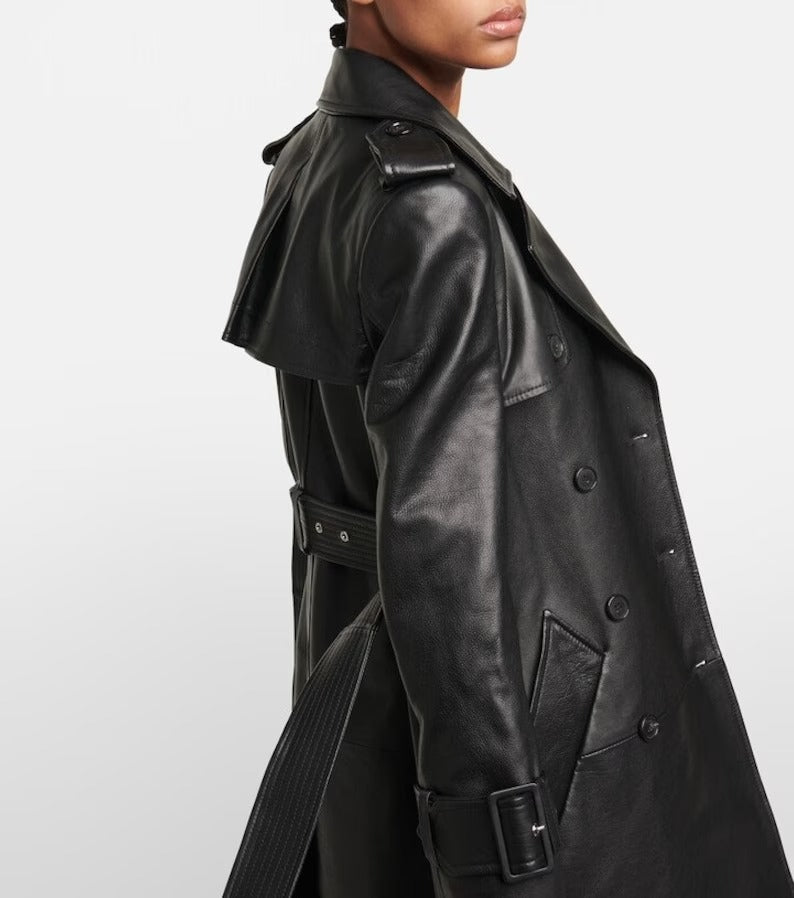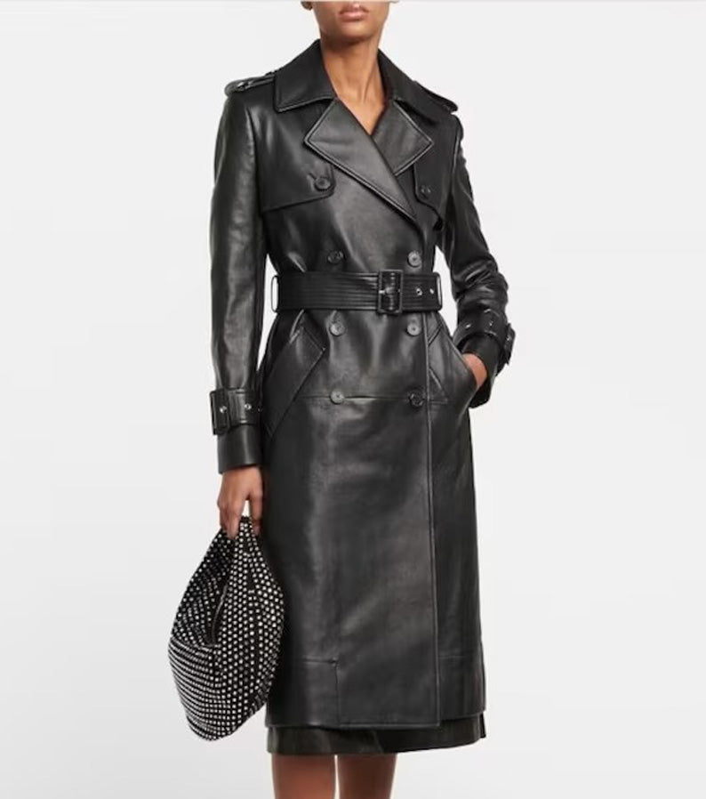 Women's Genuine Sheepskin Leather Trench Coat with Waist Belt