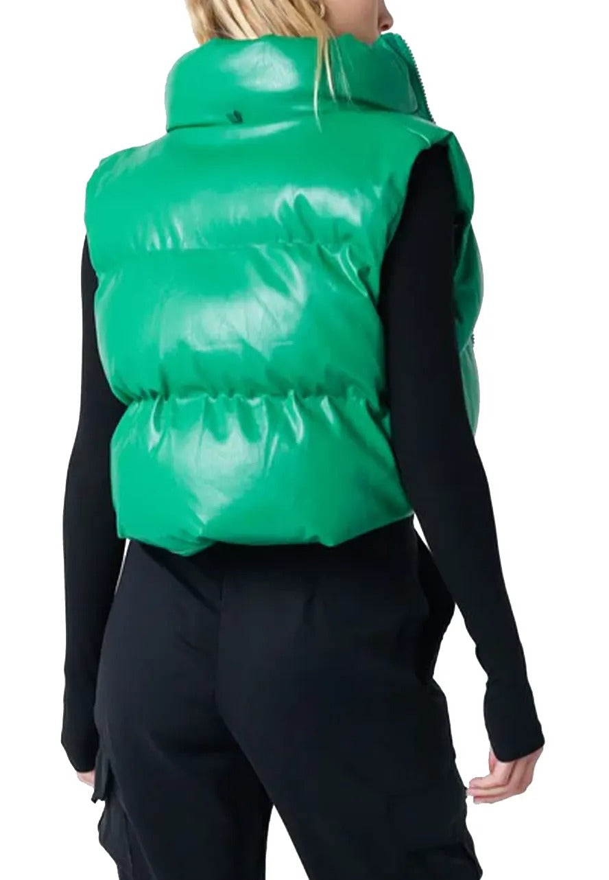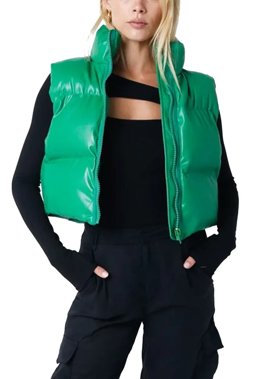 - green leather puffer vest