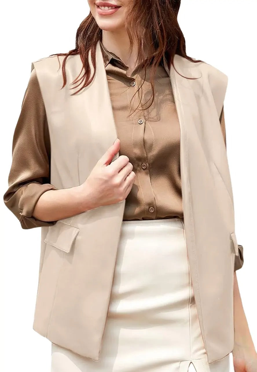 Buy the best Women's Open Front Beige Leather Vest at Glory Store AU with discounted price with free shipping.
