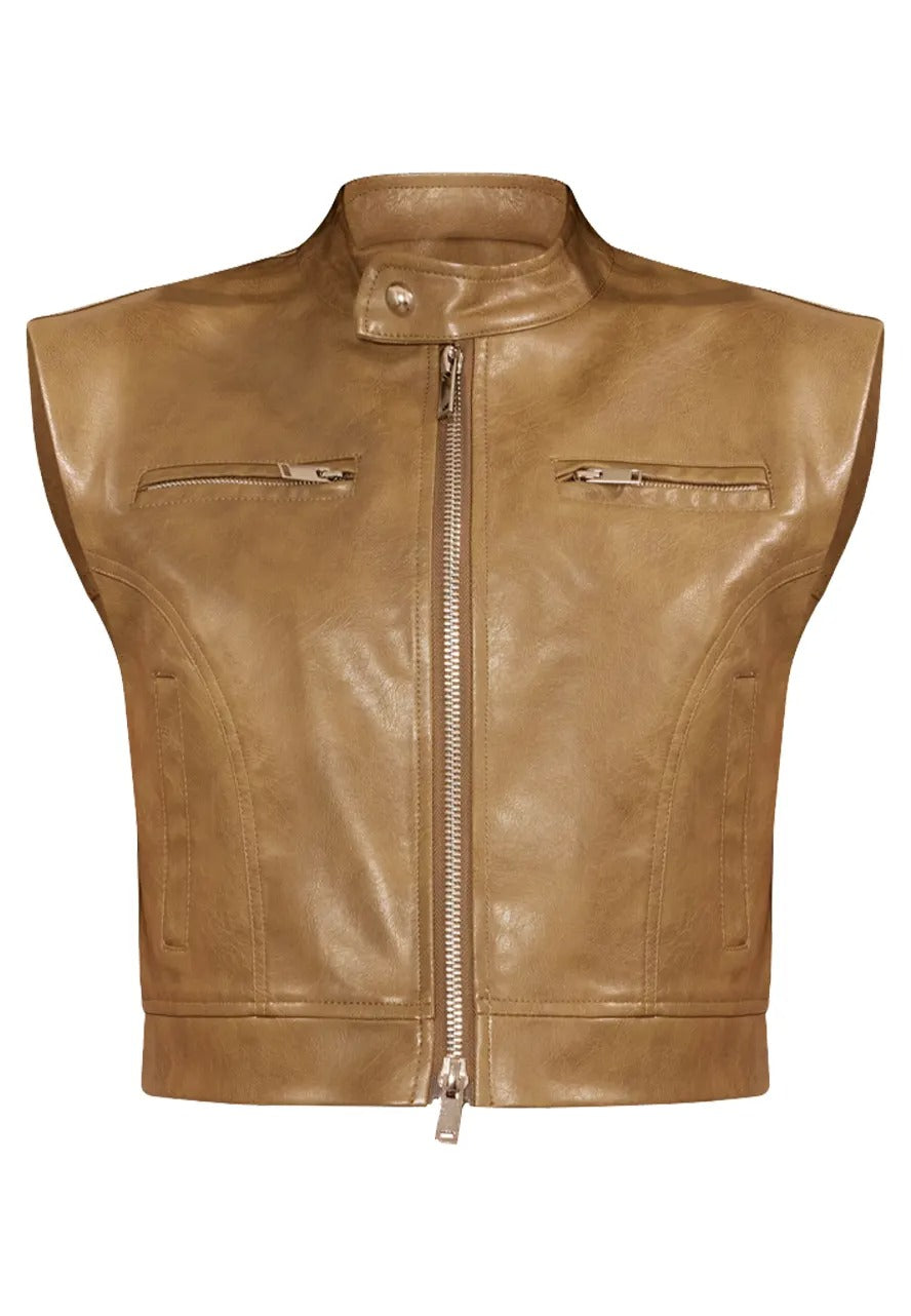 Buy the best Women's Petite Khaki Leather Vest at Glory Store AU with discounted price with free shipping.