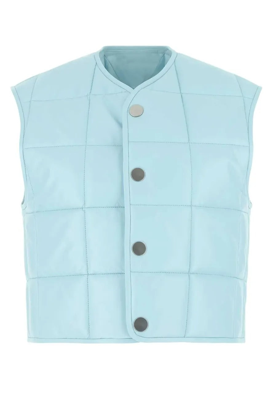 Women's Quilted Light Blue Leather Vest – Trendy & Elegant
