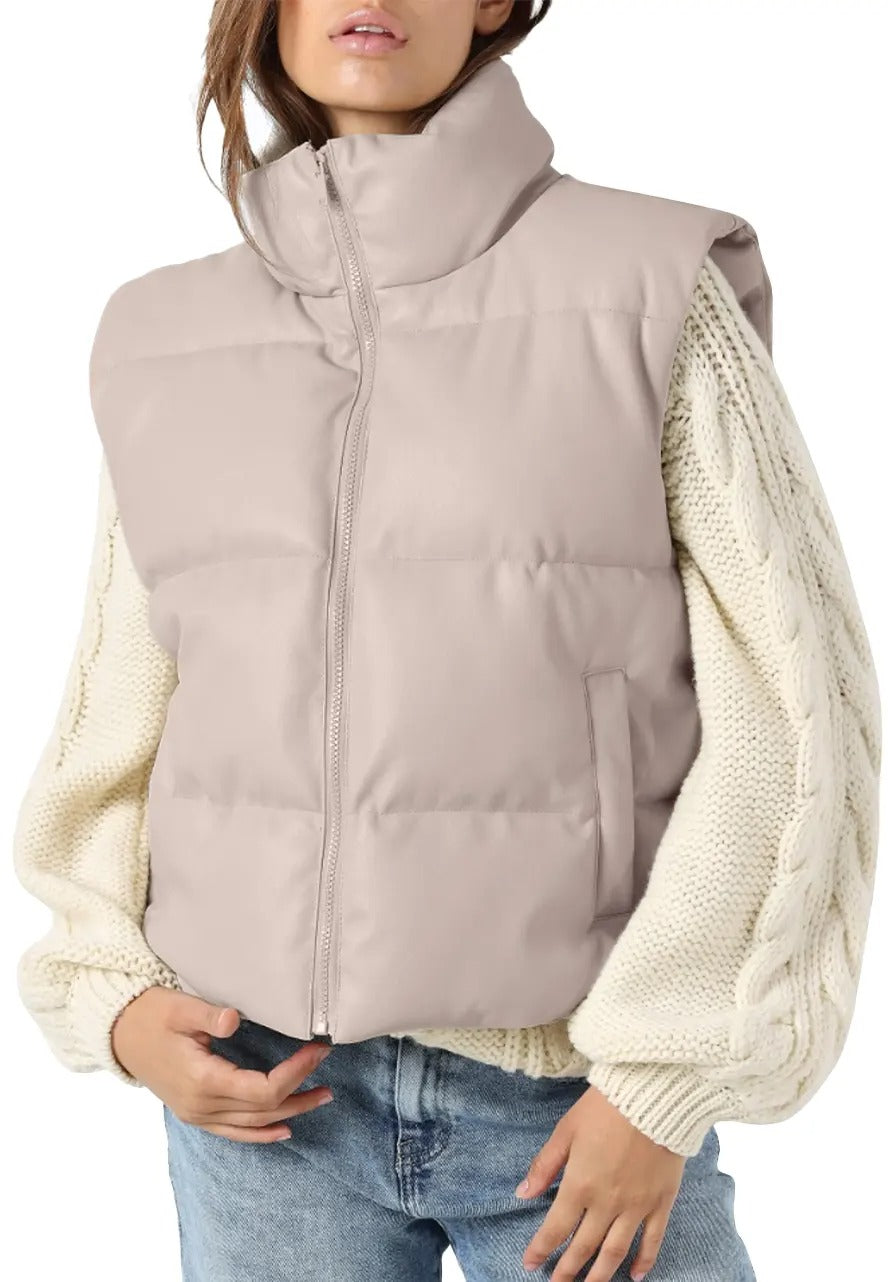 Buy the best Women's Whisper Pink Leather Puffer Vest at Glory Store AU with discounted price with free shipping.