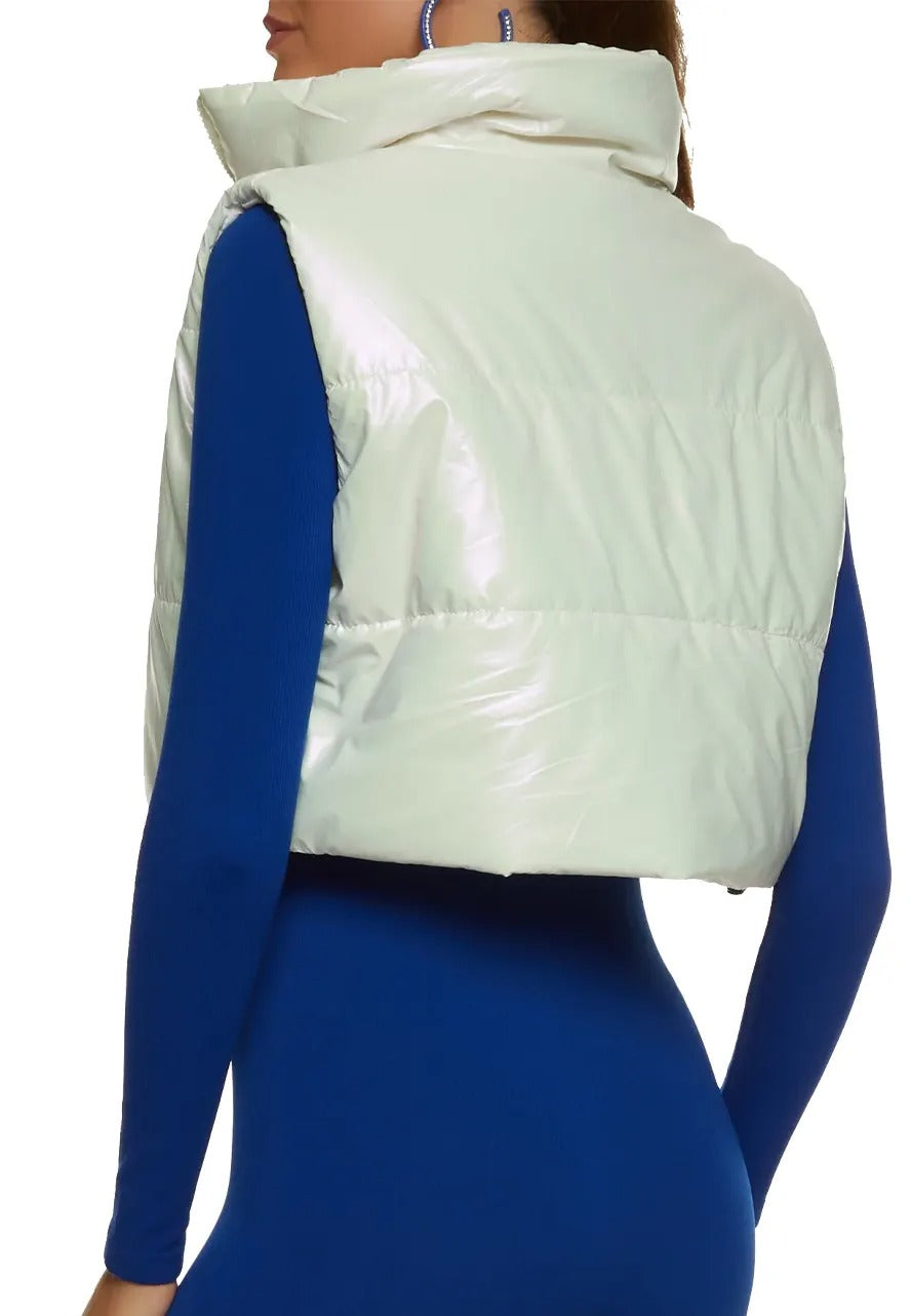 Buy the best Women's Zip Front White Leather Puffer Vest at Glory Store AU with discounted price with free shipping.